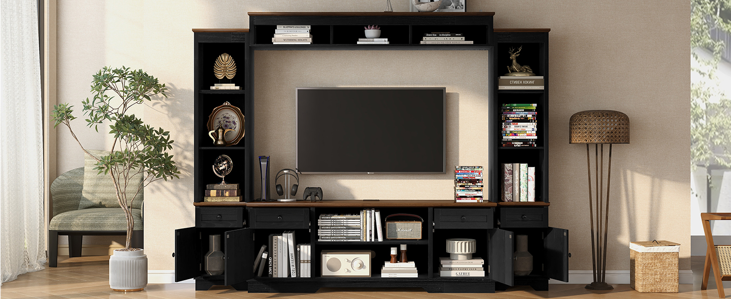 Product Name:U-Can 98.8" W Wall Unit Entertainment Center with Bookshelves for TVs up to 80", Modern TV Stand Media Console with Cabinets and Adjustable Shelves for Living Room