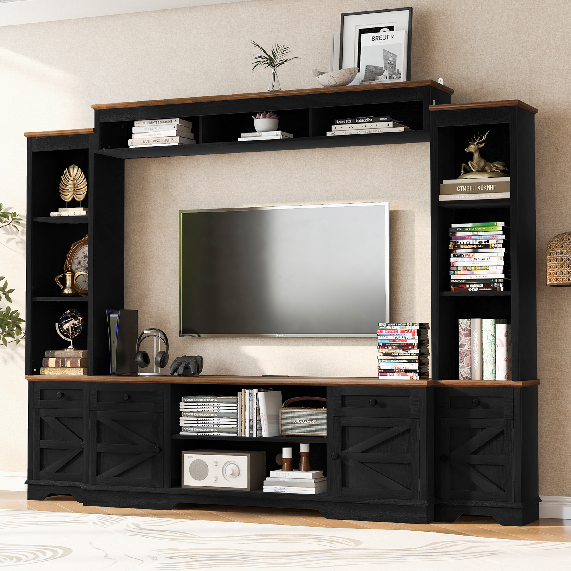 U-Can 98.8 W Wall Unit Entertainment Center With Bookshelves For TVs Up To 80, Modern TV Stand Media Console With Cabinets And Adjustable Shelves