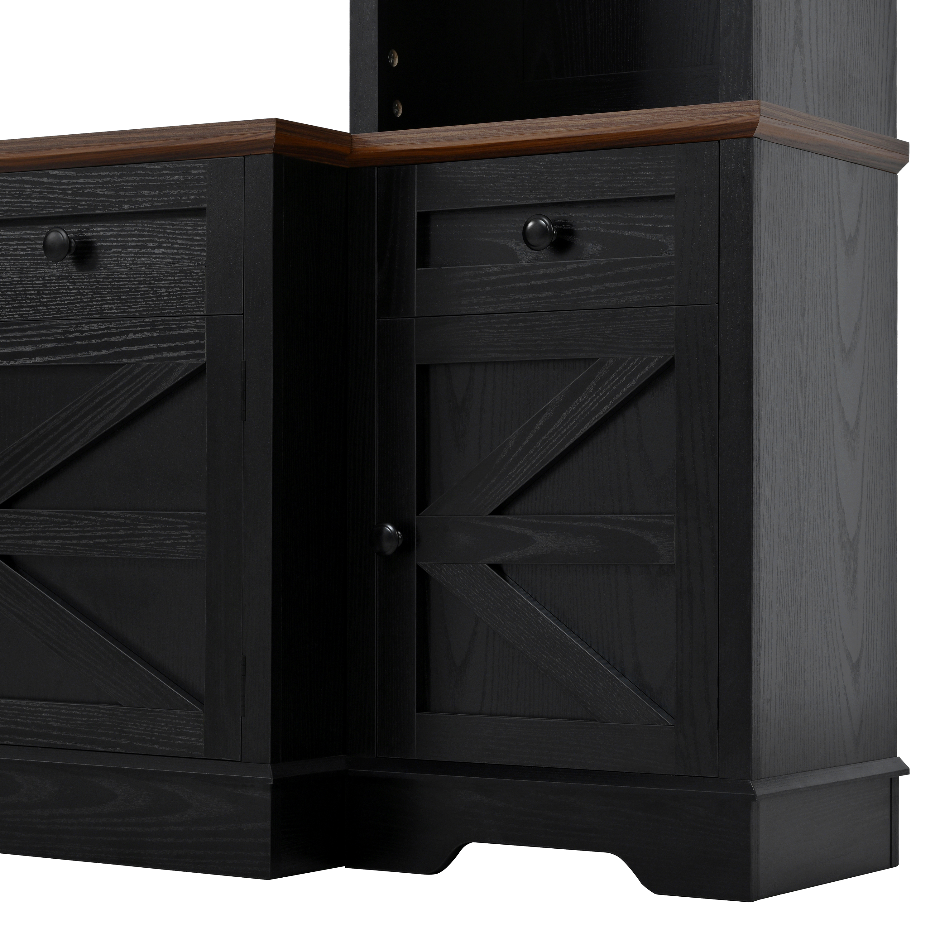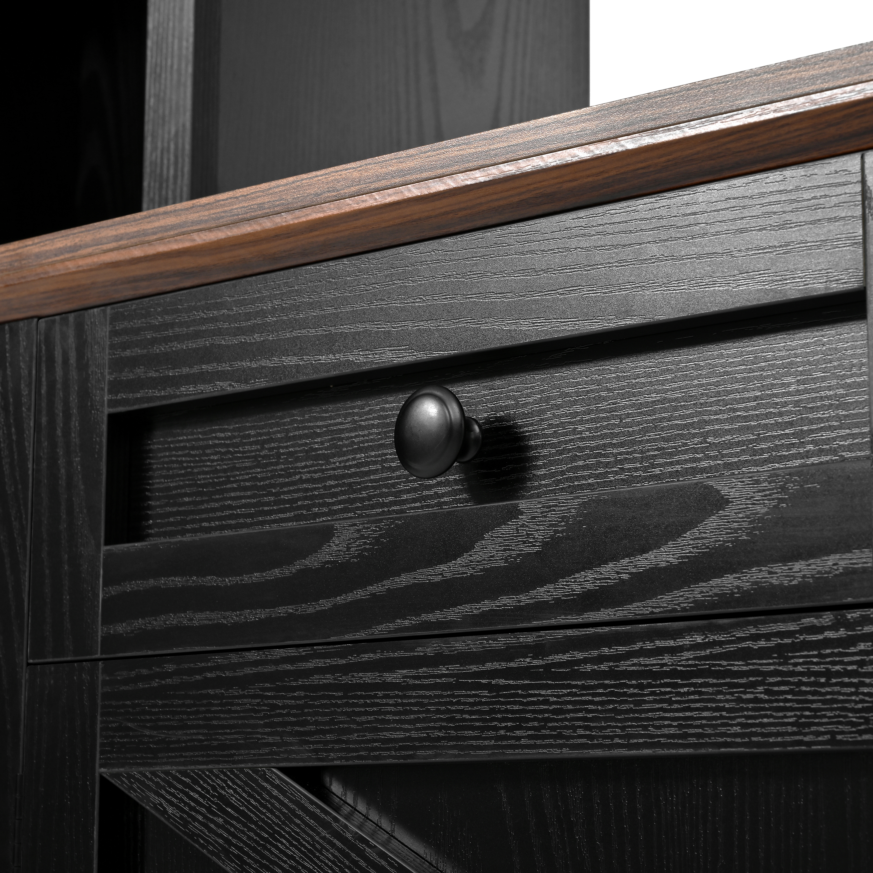 • Features classic barn doors and a wood grain finish,adding farmhouse charm to your living room.